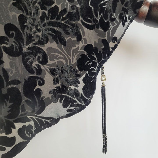 Tunique en Velours Dévoré de Soie - Motifs Floraux Noirs - Pièce Unique